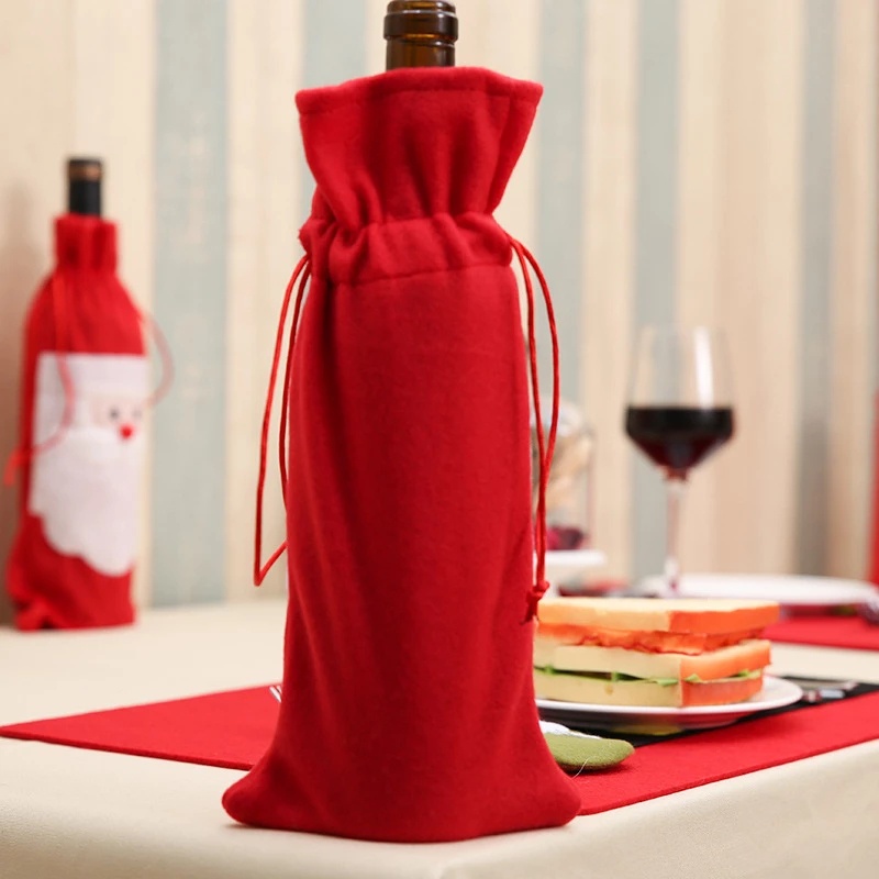 Túi đựng chai rượu vang hình ông già noel/Trang trí bàn tiệc lễ giáng sinh/Phụ kiện trang trí nhà dịp giáng sinh