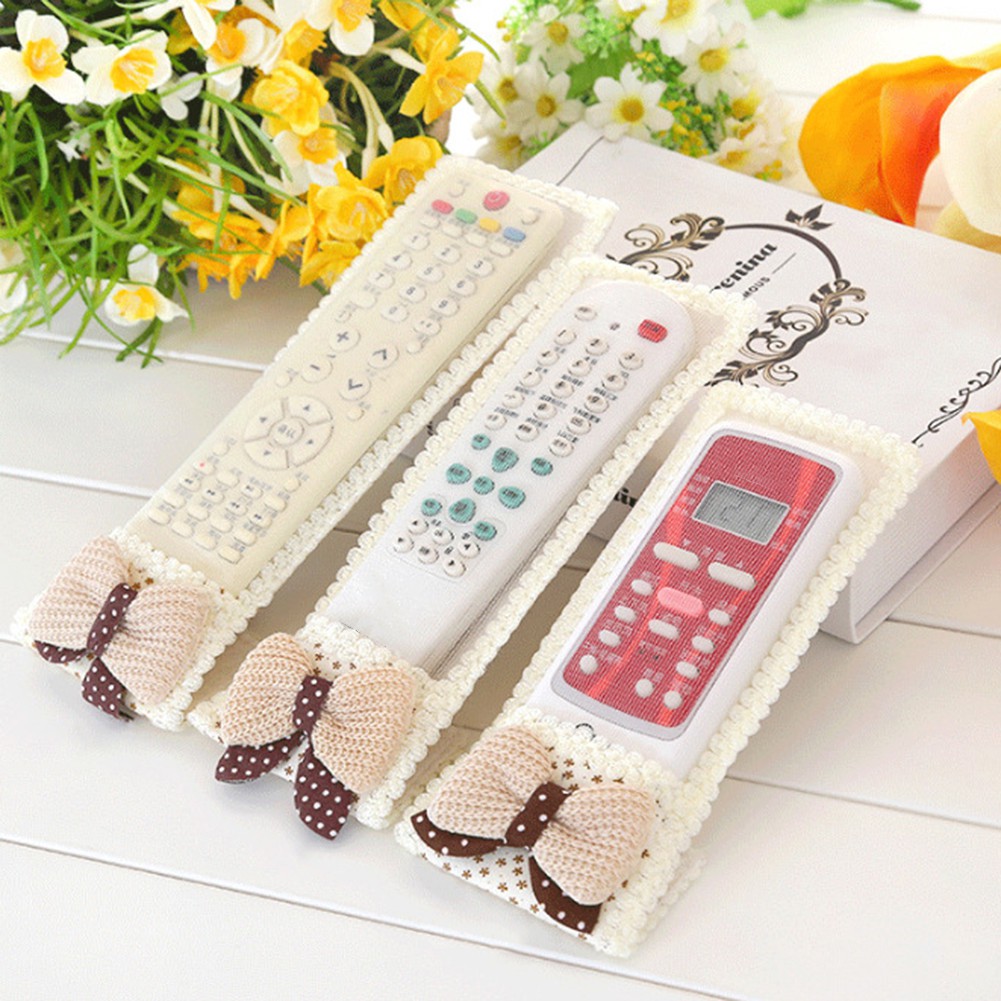Type: Remote Control Protective Case Material: Polyester Features: Protective, Dust Resistant, Bowknot S Size: 18cm x 8cm/7.09" x 3.15", for Air Conditioner Remote (Approx.) M Size: 20cm x 8cm/7.87" x 3.15", for DVD Remote (Approx.) L Size: 23cm x 8cm/9.06" x 3.15", for TV Remote (Approx.)