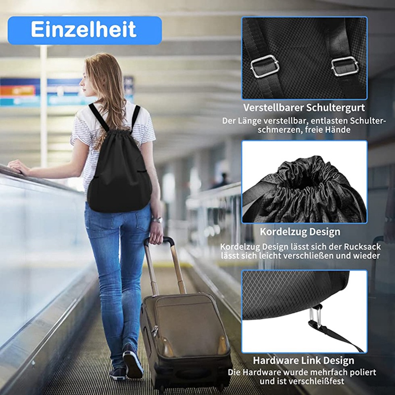 Chất liệu chống thấm nước: túi tập gym được làm bằng nylon mềm mại, không thấm nước. Chống xước, chống thấm nước và dễ lau chùi. Trong mưa, quần áo, sách hoặc những thứ khác có thể giữ khô ráo. Sau khi bơi, bạn cũng có thể cho bộ đồ bơi ướt vào đó. Dung lượng lớn: kích thước - dung tích lớn 50x40 x 18cm để mang theo nhiều loại vật dụng như đồ thể thao, giày dép, khăn thể thao, thiết bị bơi, MacBook Pro, iPad, sách, ô, chai lọ và các phụ kiện hàng ngày khác. Túi tập thể dục với nhiều chỗ cho nhu cầu hàng ngày Thiết kế dây đeo vai và dây rút có thể điều chỉnh: dây đai có thể điều chỉnh mềm mại và có thể điều chỉnh độ dài, cho phép đau vai, rảnh tay; thiết kế dây rút giúp balo dễ dàng đóng và mở. Dễ dàng mang theo và rất thích hợp cho những chuyến du lịch hàng ngày. Có túi bên trong zip: túi tập gym có túi zip bên trong để đựng các vật dụng có giá trị bên trong. Bạn có thể đặt chìa khóa, thẻ hoặc điện thoại vào đó, túi bên trong giúp truy cập tối đa vào điện thoại hoặc những thứ quan trọng khác. Vì vậy, bạn không cần phải tìm kiếm chìa khóa của mình mãi mãi. Ứng dụng rộng rãi: ba lô phù hợp cho nhiều dịp, chẳng hạn như hoạt động thể thao, đào tạo, chạy, yoga, bơi lội, cắm trại và các hoạt động trong nhà và ngoài trời khác. hoàn hảo cho các hoạt động thể thao như một túi tập thể dục thoải mái, túi tập thể dục hoặc thể thao Túi.