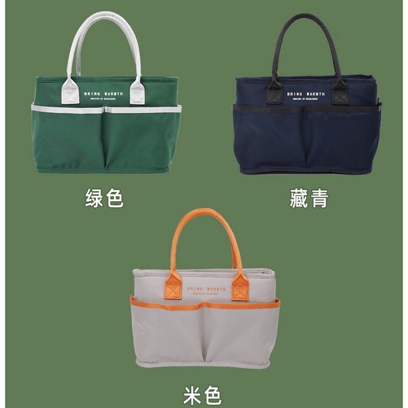 Thông tin sản phẩm Tên: Túi bento Kích thước: Nhỏ: 25 * 22 * 11,5cm, Lớn: 34 * 22 * 14cm Màu sắc: Xanh đậm, kaki Cân nặng: Nhỏ: 0,2kg, lớn: 0,35kg Materia : 420 twill Bao bì bên ngoài: Opp