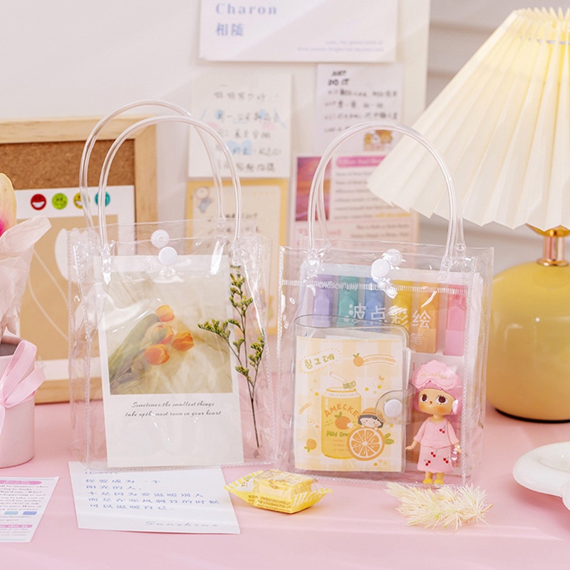 1.Thiết kế độc đáo của chiếc túi xách này là nó trong suốt. Thiết kế trong suốt giúp bạn nhanh chóng tìm thấy các vật dụng bên trong, thuận tiện và nhanh chóng hơn. Hơn nữa, Những chiếc túi quà này đi kèm với một nút nhỏ, dễ sử dụng và ngăn mọi thứ bị tuột ra ngoài.