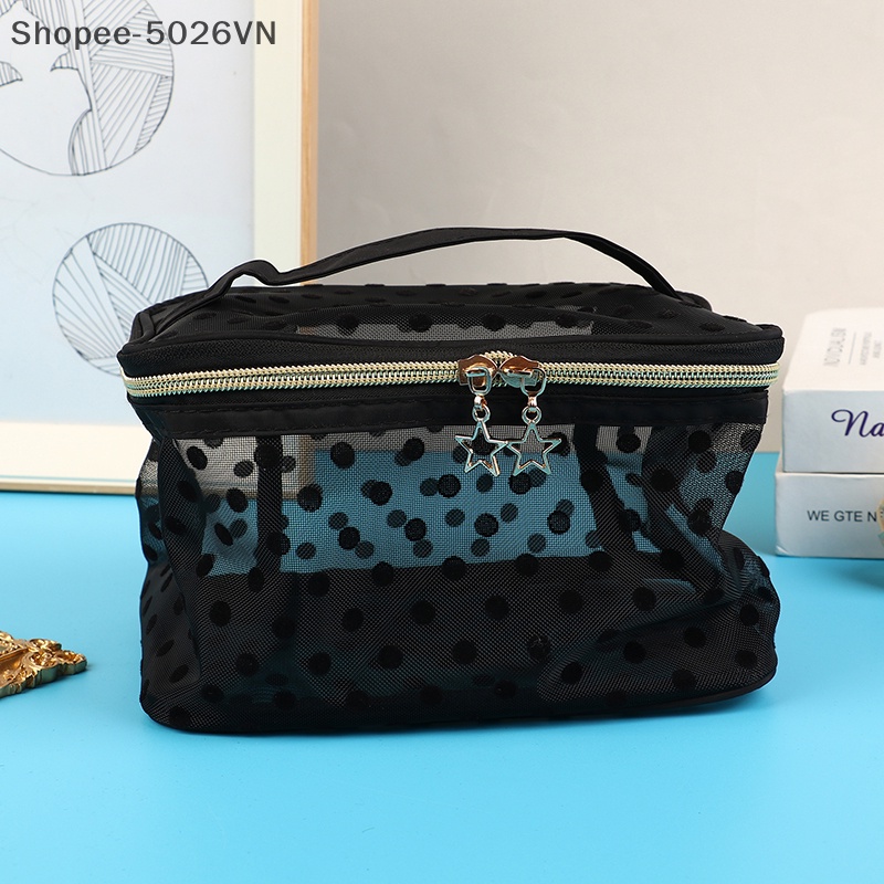 Tính năng ' 1.Sử dụng rộng rãi - những chiếc túi lưới này có thể được dùng làm túi đựng mỹ phẩm , hộp đựng bút chì , ví đựng tiền xu , túi tổ chức du lịch , v.v. có thể lưu trữ mỹ phẩm của bạn , như cọ trang điểm , bút chì kẻ mày , môi hoặc một số vật dụng hàng ngày như Chìa khóa , thẻ , điện thoại , v.v . 2.Thiết kế thực tế - thiết kế dạng lưới trong suốt thuận tiện cho bạn kiểm tra các vật dụng bên trong và có thể tiết kiệm thời gian của bạn khi tìm đồ , có khóa kéo phía trên. trơn tru và dễ dàng cho bạn đóng mở. sẽ Mang đến cho bạn trải nghiệm sử dụng tốt đẹp . 3.Cứng cáp khi sử dụng - Những chiếc túi có dây kéo lưới này được làm bằng nylon , chất liệu linh hoạt và đáng tin cậy , không dễ bị vỡ và phai màu , an toàn khi sử dụng , có thể cung cấp cho bạn thời gian sử dụng lâu dài . 4.Sự lựa chọn tốt nhất để thể hiện sự quyến rũ và cá tính cá nhân . Sự kết hợp giữa thời trang và khí chất như một món quà . Bền bỉ , sáng tạo và hấp dẫn . 5.Thiết kế rộng rãi - Với hai lớp và nhiều ngăn , túi vệ sinh của chúng tôi cung cấp không gian rộng rãi để lưu trữ tất cả đồ trang điểm và đồ vệ sinh cá nhân của bạn .