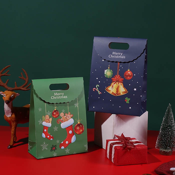 Giới thiệu Túi đựng quà Giáng sinh nắp gấp xách tay, túi giấy Noel 26x19x9cm màu sắc xinh xắn