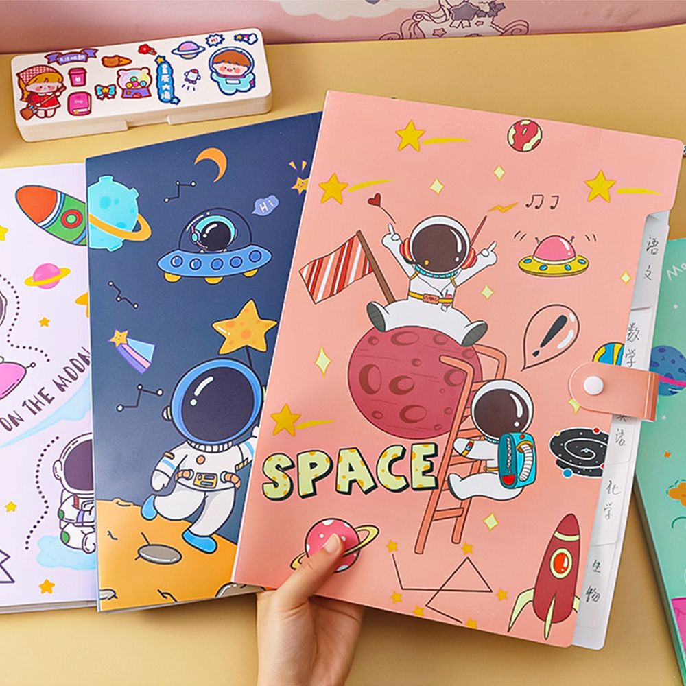 Túi đựng tài liệu khổ A4 bằng PVC 6 ngăn in hình phi hành gia hoạt hình