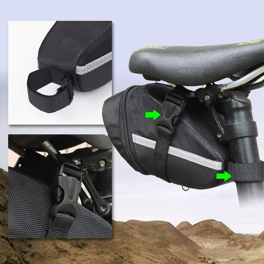 Mini design Bike Saddle Bag, enough space inside allows for easy store your wallet, phones, towels, small tools, etc.