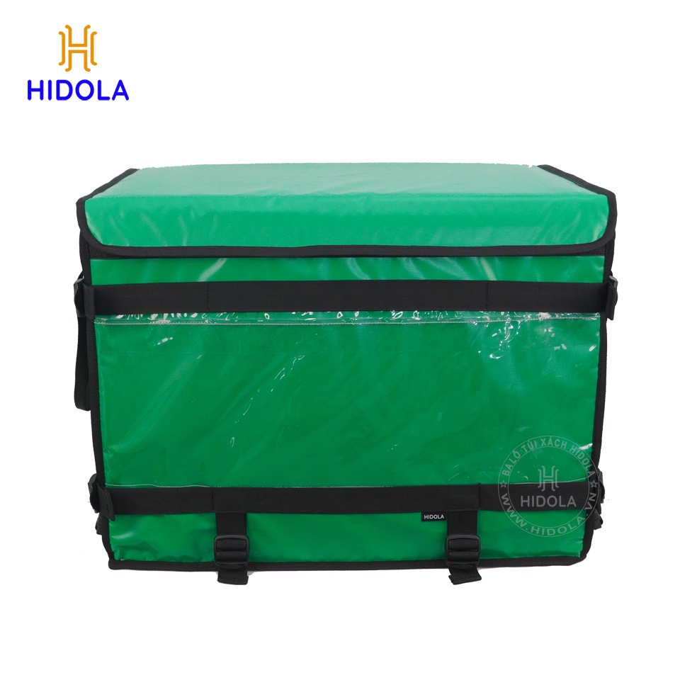 - Hai bên hông của túi giao hàng shipper 7191B còn có 2 túi màn kính pvc trong suốt ở 2 hông giúp việc đựng nhiệt kế luồng dây bên trong túi, đựng menu, in tờ rơi catalogue,...rất tiện dụng.