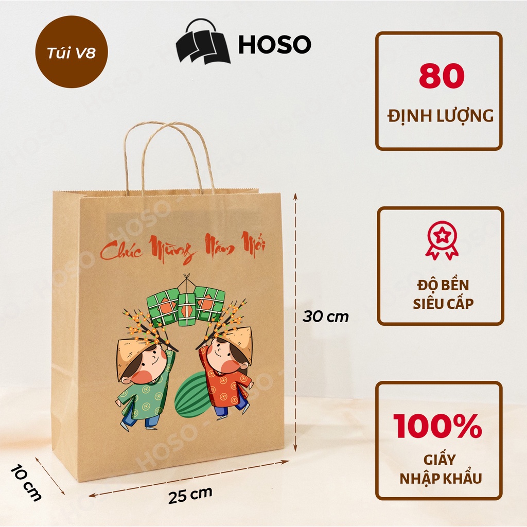 Giới thiệu Túi giấy kraft in sẵn đựng quà chúc tết 2023, chúc mừng năm mới đẹp