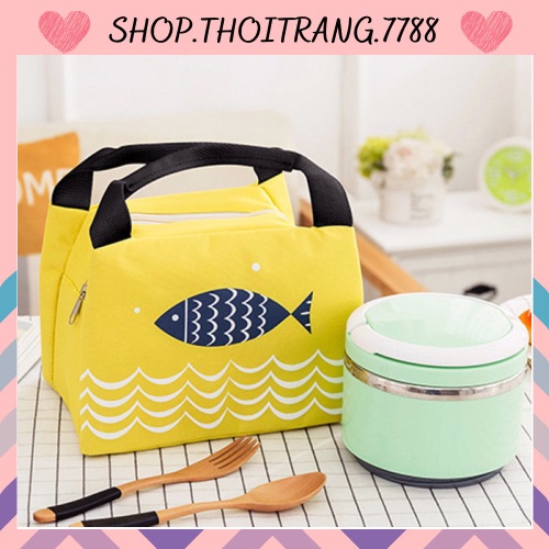 - Chất liệu: vải mau khô, bên trong cách nhiệt - Sản phẩm đa dạng mẫu mã shop sẽ giao ngẫu nhiên nếu các mẹ k chọn mẫu Điểm nổi bật - Túi giữ nhiệt là sản phẩm cực tiện ích cho dân văn phòng, giới học sinh - sinh viên, giúp món ăn bạn đem theo luôn nóng hổi, thơm ngon. - Kiểu dáng đơn giản mà xinh xắn, ngăn to tiện dụng đựng vừa nhiều loại hộp khác. - Khóa dán chắc chắn giúp bạn để hộp thức ăn vào gọn gàng và không bay hơi và quai cầm tiện dụng. - Túi nhiệt Thiết kế hai lớp thông minh, bên ngoài là lớp vải chống thấm nước, bên trong là lớp lót giúp giữ nhiệt hiệu quả. - Dễ dàng vệ sinh sau khi sử dụng, phù hợp với mọi đối tượng. - Thích hợp dùng khi đi làm, đi học, đi chơi picnic…