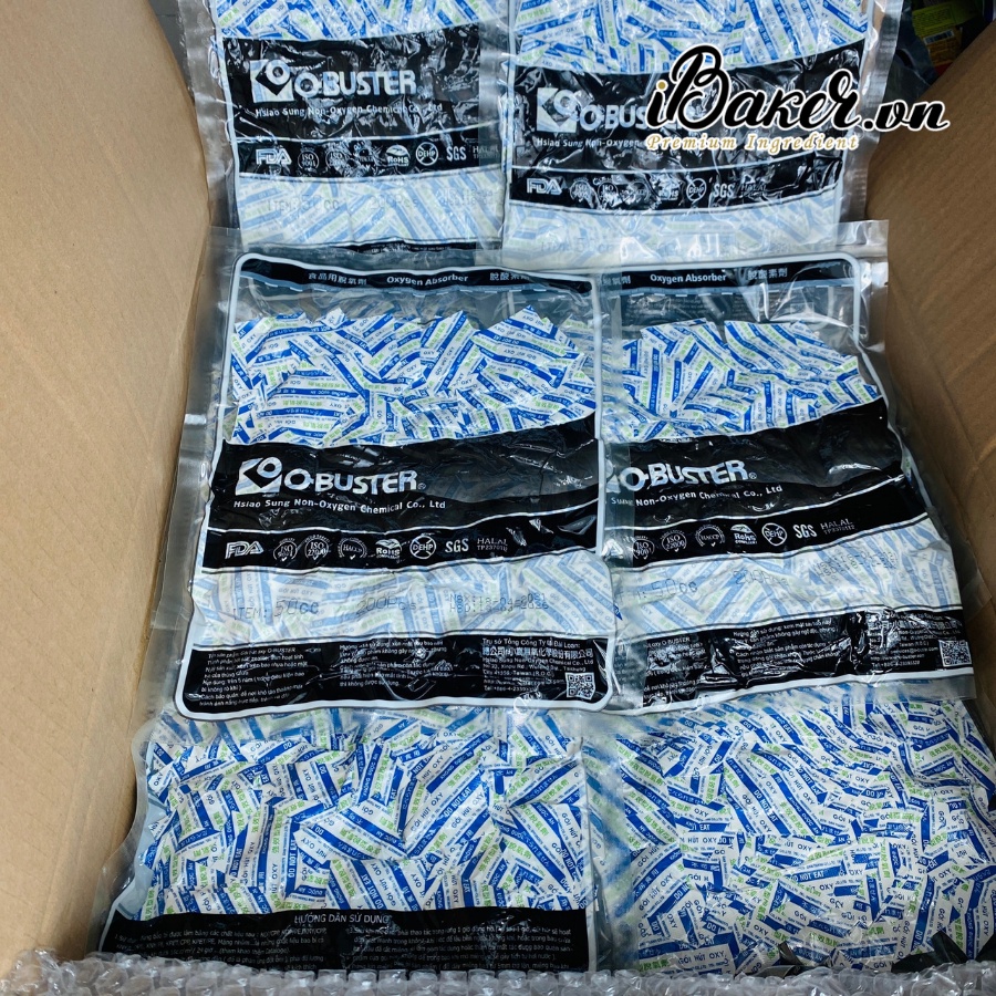 Gói hút oxy O-Buster dùng để hút Oxy trong nghành thực phẩm, làm bánh, các loại hạt,... bằng cách khử sạch oxy trong bao bì, bảo vệ và giữ gìn chất dinh dưỡng có trong lương thực thực phẩm.