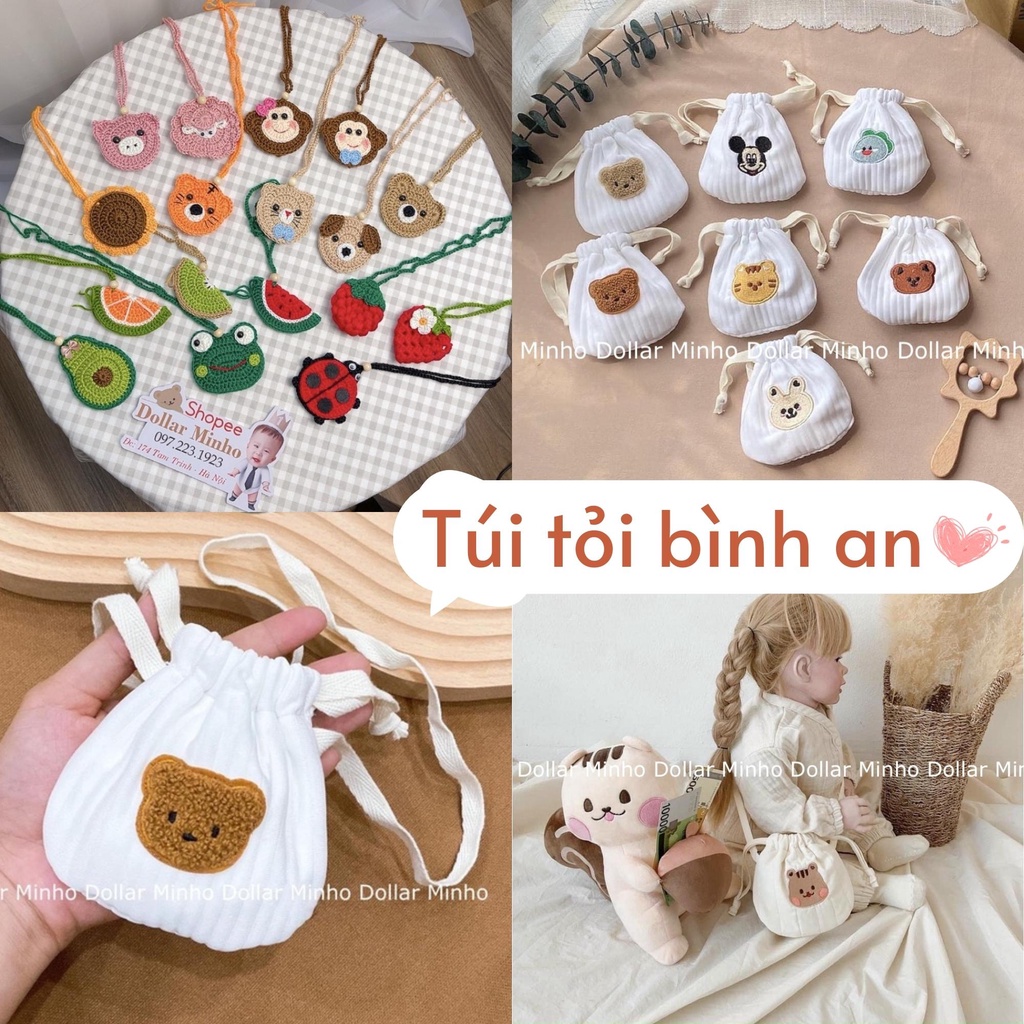 Giới thiệu Túi tỏi bình an cho bé chất liệu len và coton hàng loại 1, sắc nét, nhiều hình ngộ nghĩnh Dollar Minho