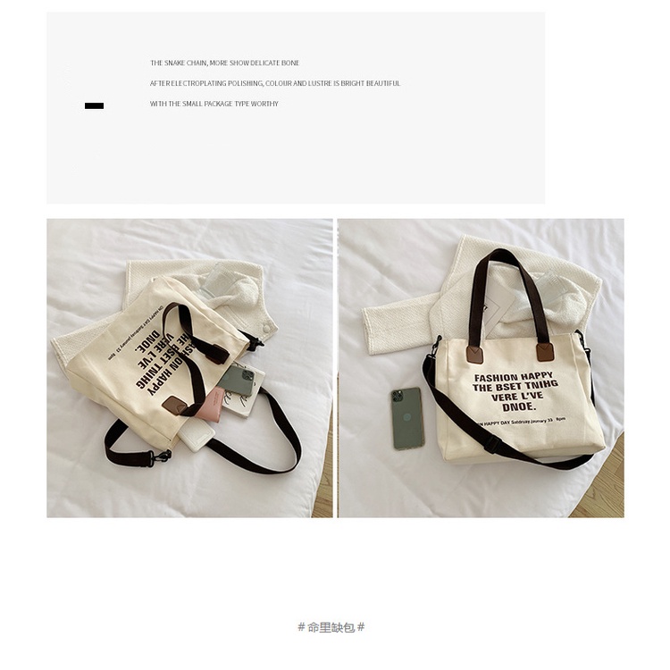 Giới thiệu Túi tote bag vải canvas thời trang túi hai quai hàn quốc in chữ kèm dây đeo TT07-i0140