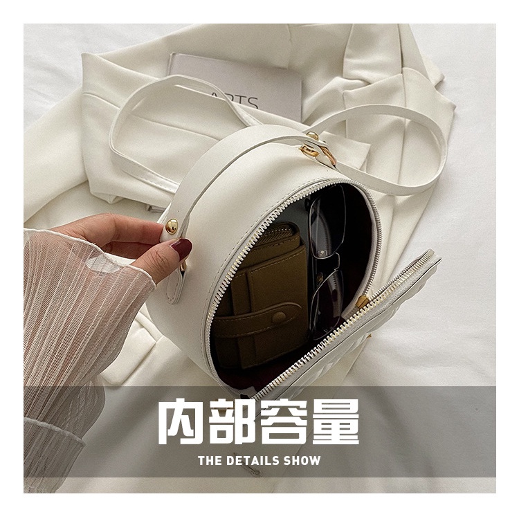 Túi tote/ đeo chéo JASMIN NOIR kiểu tròn có dây đeo chần bông kẻ sọc caro cho nữGiá HABIBI