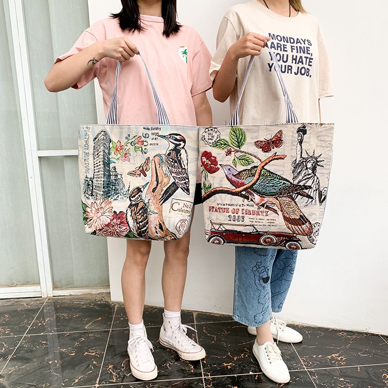 Giới thiệu Túi tote vải in hình dễ thương chất liệu cói vải canvas cao cấp[ VẢI DÀY ĐẸP-TÚI QUẢNG CHÂU]