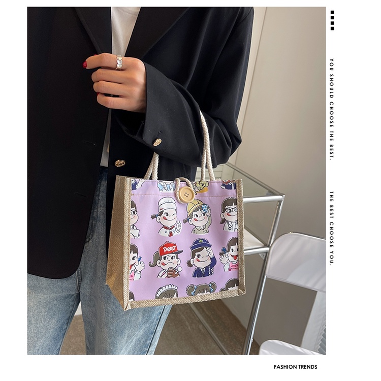 Giới thiệu Túi tote vải lanh cúc cài in hoạ tiết hoạt hình thời trang YM406