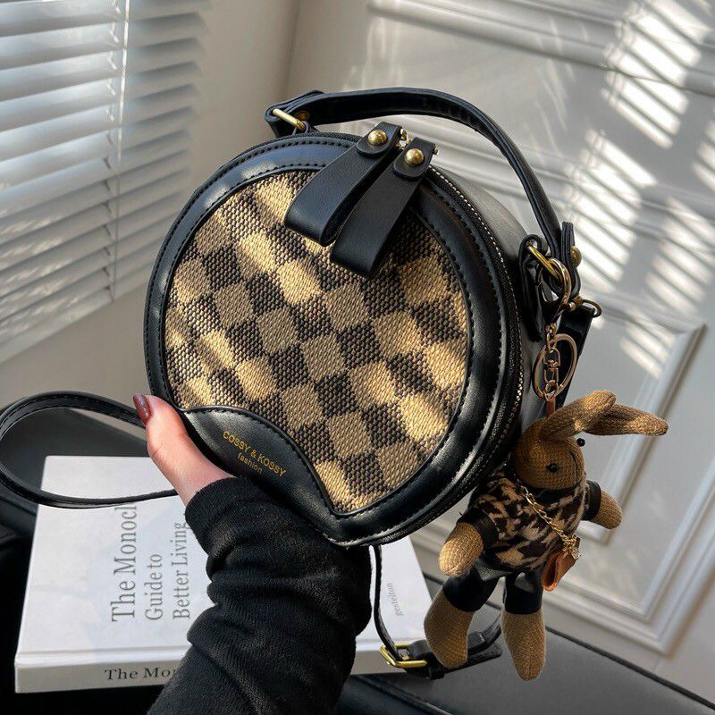 Giới thiệu Túi trống tròn caro phối chất dạ cao cấp sang trọng nhập khẩu kèm thỏ y hình