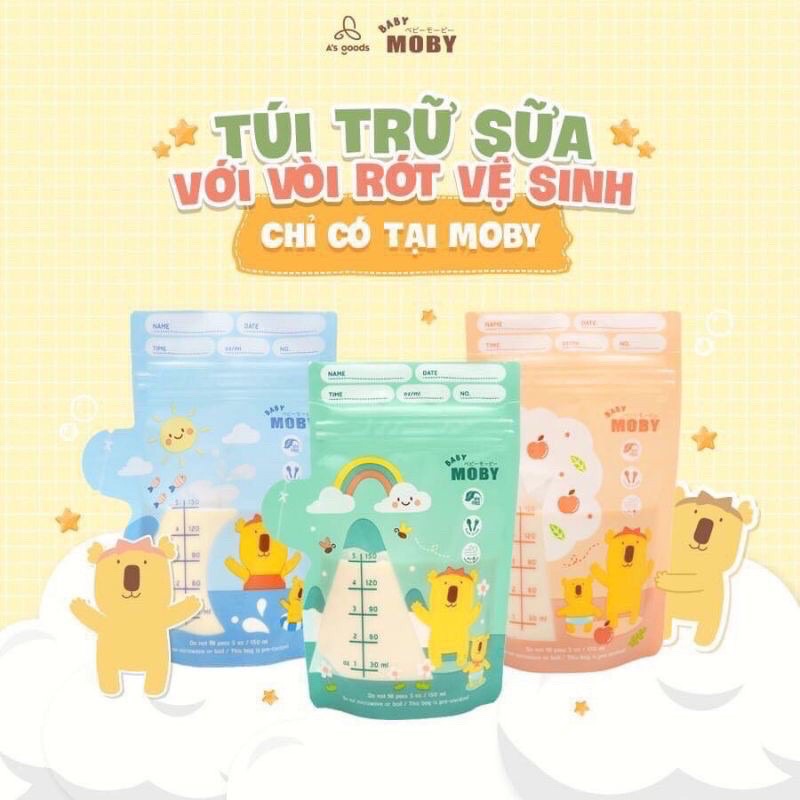 Công cuộc cho con bú sữa mẹ giờ đây dễ dàng hơn bao giờ hết với túi trữ sữa Moby, sản phẩm được ưa chuộng hàng đầu tại Thái Lan. Lưu trữ lâu hơn nhờ chất liệu dày dặn, giữ nguyên vẹn 100% chất dinh dưỡng của sữa mẹ - đó chính là những ưu điểm đến từ Moby. Mỗi túi đã được tiệt trùng sẵn và niêm phong kín, khóa zip 3 lần tránh bị đổ sữa, đảm bảo vệ sinh tuyệt đối. Sản phẩm có vạch chia ml và phần ghi ngày tháng rõ ràng cho mẹ dễ theo dõi.