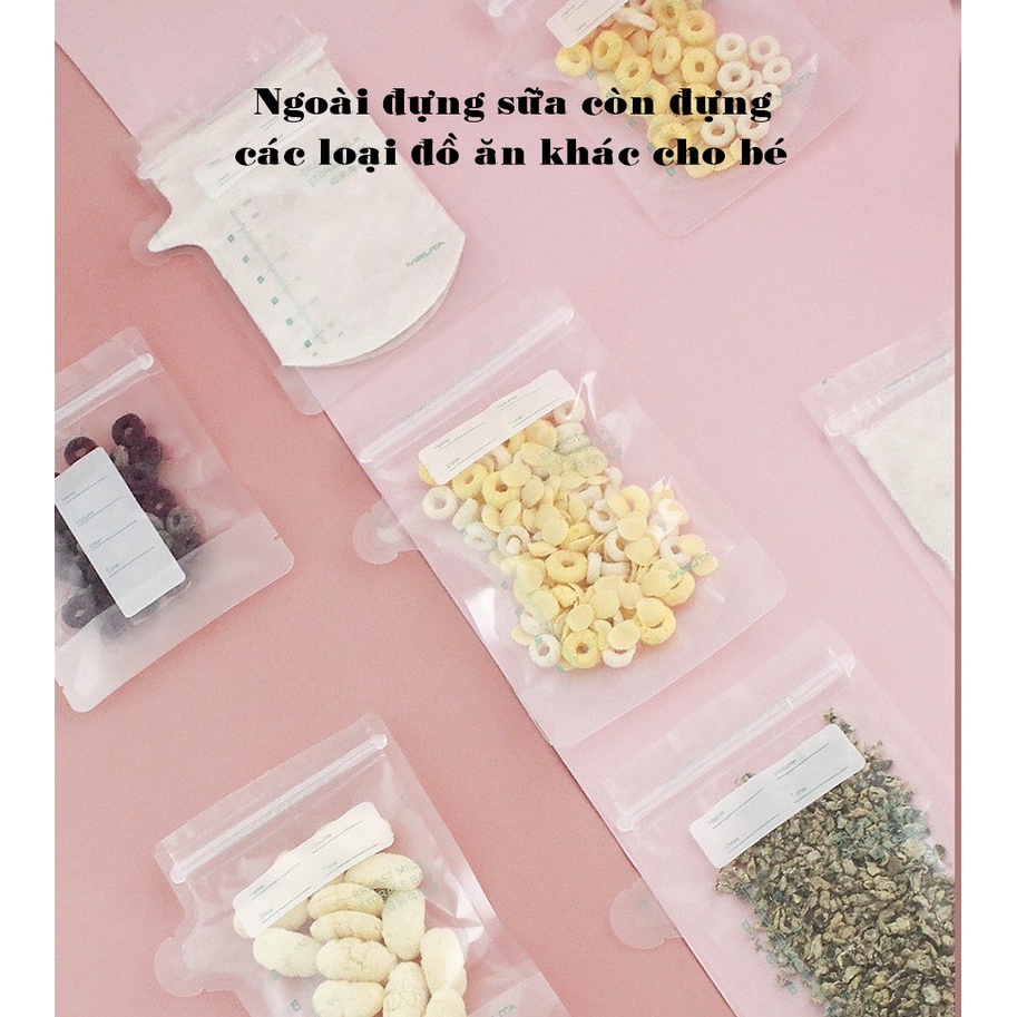 Thông tin sản phẩm : – Túi trữ sữa không có BPA, rất an toàn cho em bé - Túi Được là từ chất liệu nhựa cao cấp không mùi – Túi đựng sữa mẹ (trữ sữa mẹ) đã được tiệt trùng sẵn - Mặt đáy có thể tự đứng nên dễ dàng xếp gọn gàng và tích kiệm diện tích sử dụng trong tủ lạnh - Chữ in giữa lớp túi trong và túi ngoài, an toàn khi sử dụng – Không rò rỉ, không chảy sữa vì có 2 khoá zip chắc chắn – Có thể hút sữa trực tiếp vào túi (không cần bình). – Hoàn toàn tự đứng – An toàn với tủ lạnh, tủ đông – Túi trữ sữa loại này có thể xếp đứng trong tủ lạnh, tủ đông dễ dàng – Đựng được 150ml - 200ml