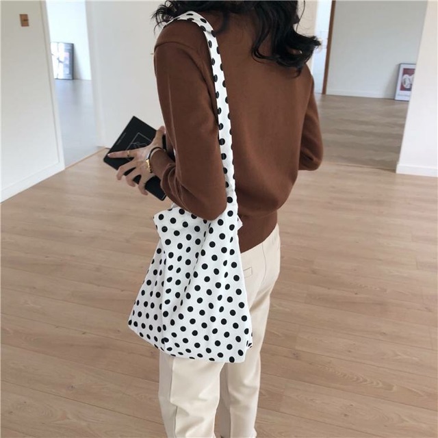 Túi vải chấm bi đựng đồ canvas đeo chéo thời trang giá rẻ