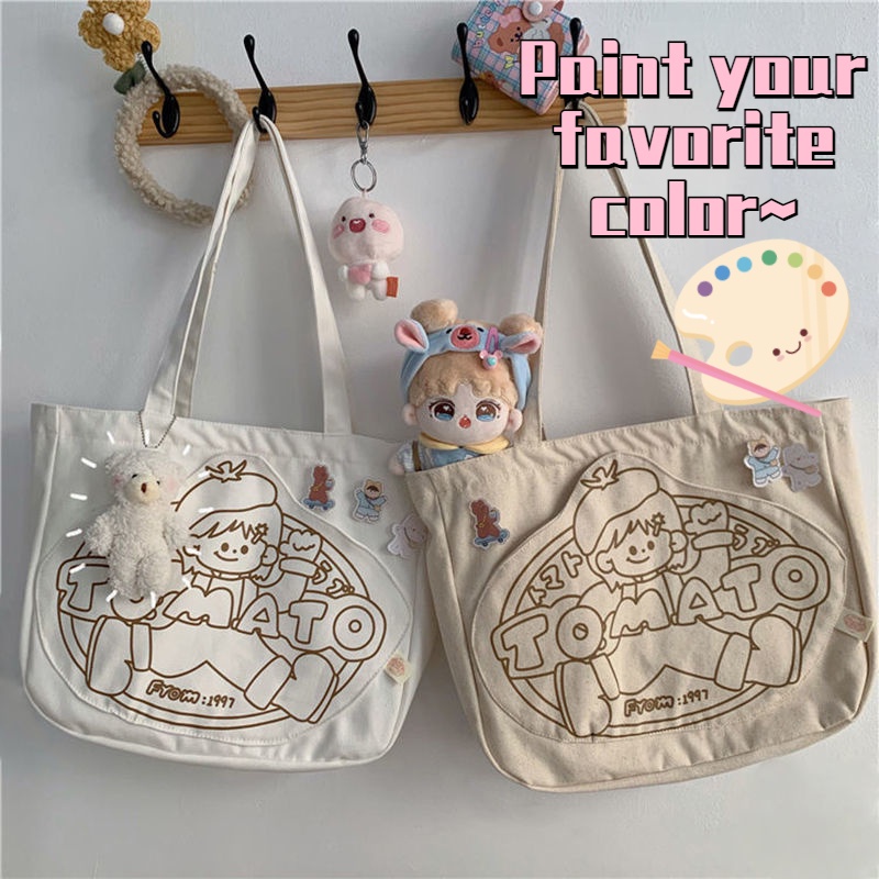 Giới thiệu Túi vải Sức Chứa Lớn Họa Tiết Hoạt Hình Dễ Thương Phong Cách Hàn Quốc DIY