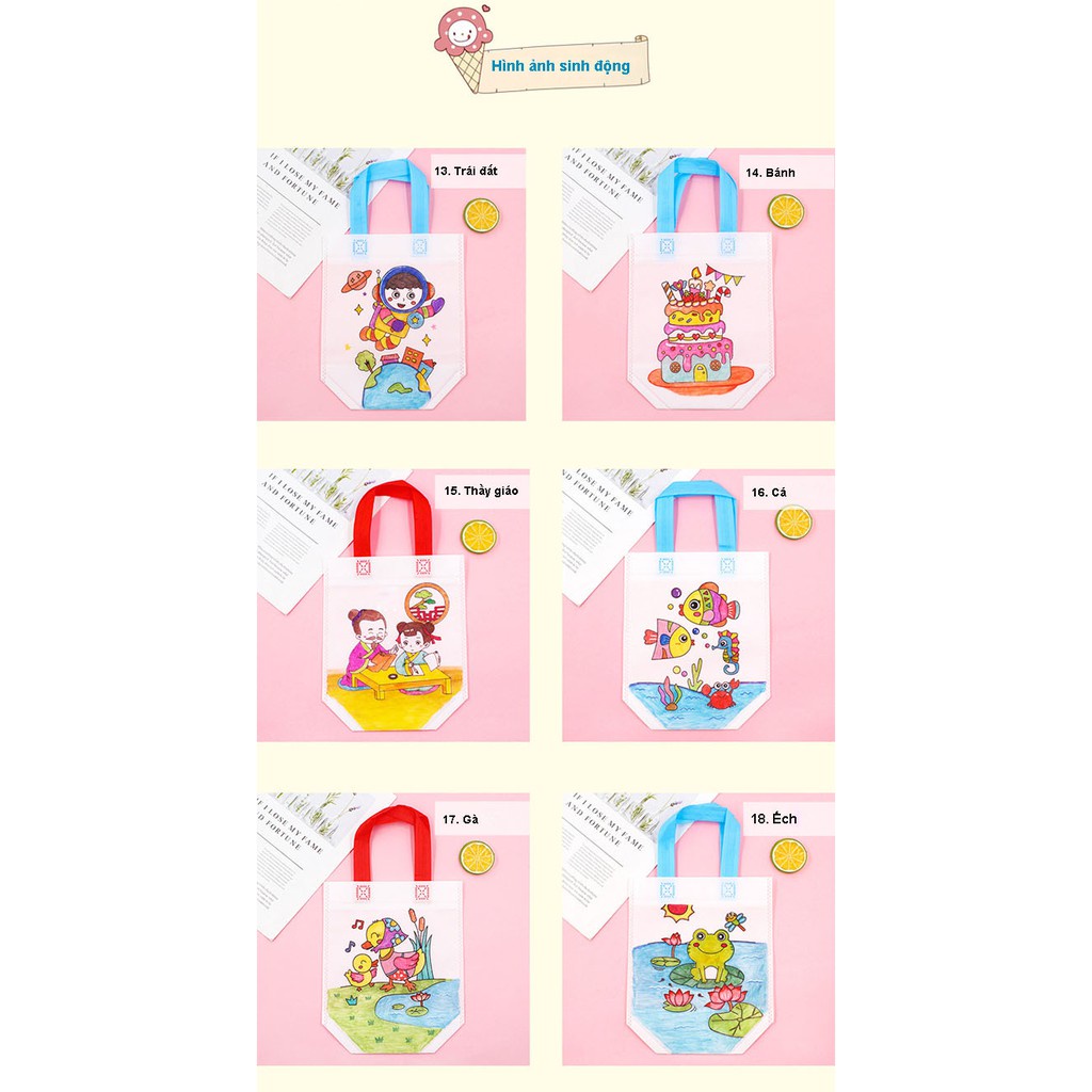 Giới thiệu Túi Vải Vẽ, Tô Màu Cho Bé (Tặng Kèm 6 Màu Dạ) Nhiều Hình Dễ Thương Monshop vpp