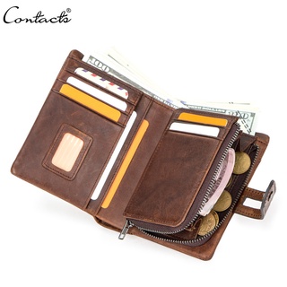CONTACT'S Ví Da Thật Dáng Ngắn Có Khóa Kéo Đựng Thẻ Tiện Dụng Cho Nam