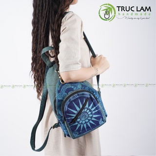 Balo Thời Trang Quai Đeo Đa Dụng Vải Thổ Cẩm Họa Tiết Vẽ Tay Sáp Ong Phối Vải Gai Dày S025 - Trúc Lâm Handmade