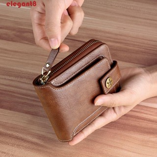 ELEGANT Ví Da PU Mềm Đựng Thẻ Có Khóa Kéo Thời Trang Cho Nam