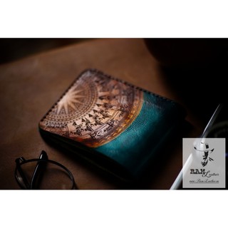 Ví nam da bò RAM Leather Da Bò Khắc Trống Đồng Xanh Rêu Aqua Green