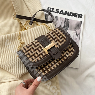 Túi đeo chéo dây pha xích họa tiết houndstooth ST30