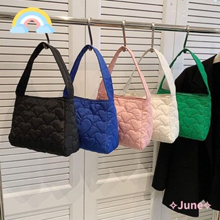 JUNE Túi Tote Có Đệm Cotton Mềm Màu Trơn Sức Chứa Lớn Họa Tiết Trái Tim Đơn Giản Đựng Đồ Mua Sắm Du Lịch
