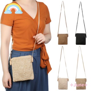 JUNE Túi Đeo Vai Bằng Rơm Cotton Thiết Kế Đục Lỗ Phối Dây Thừng Nhỏ Xinh Thời Trang Cho Nữ