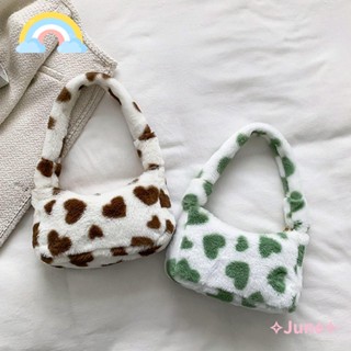 JUNE Túi Tote Đeo Vai Phối Lông Nhung Dễ Thương Xinh Xắn Cho Nữ