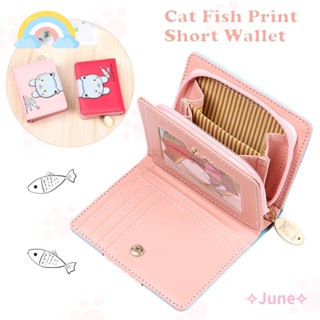 Ví Da PU Dáng Ngắn In Họa Tiết Mèo / Cá Có Khóa Kéo Đựng Thẻ / Nhiều Ngăn Thời Trang Cho Nữ
