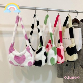 JUNE Túi Tote Đeo Vai Phối Lông Họa Tiết Trái Tim Thời Trang Thu Đông