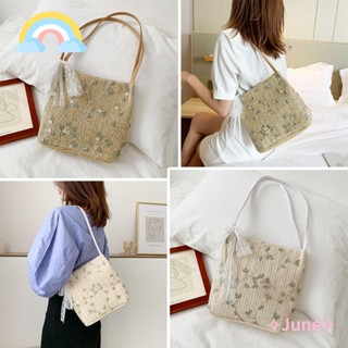 JUNE Túi Cói Đeo Vai Màu Trơn Thời Trang Trẻ Trung