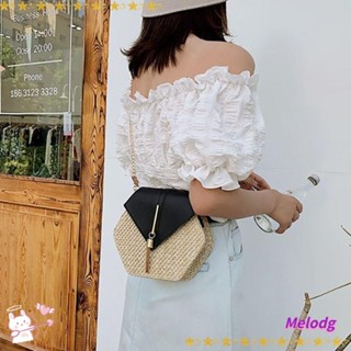Túi Cói Đan Thủ Công Phối Dây Xích Đeo Vai Cá Tính