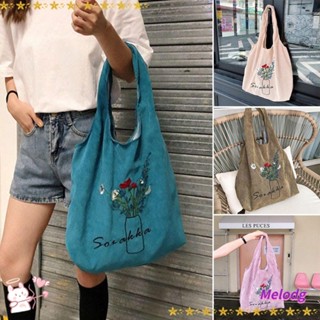 MELODG Túi Tote Đeo Vai Bằng Vải Nhung Màu Trơn Thoải Mái
