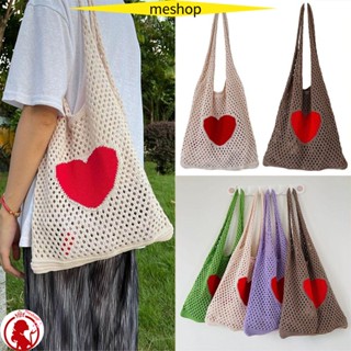 Túi Tote Đan Len Họa Tiết Trái Tim Phong Cách Boho Cho Nữ
