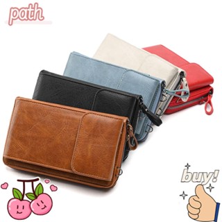 Ví Da PU Dáng Dài Đựng Thẻ Phối Khóa Kéo Đôi