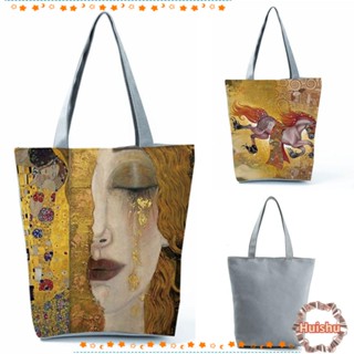 Túi Xách Vải Lanh Cỡ Lớn Họa Tiết Tranh Sơn Dầu Thời Trang