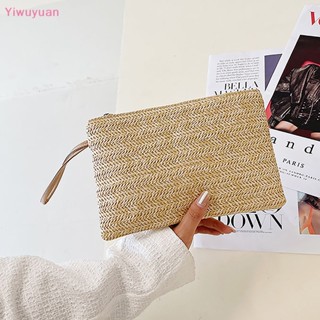 < Yiwuyuan > Ví Nữ Dệt Rơm Màu Trơn Có Dây Đeo Cổ Tay Đựng Tiền Xu Điện Thoại Thời Trang Đi Biển Mới