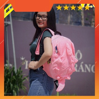 Ba lô CÁ SẤU UNI-01 vải nhung mịn 2 lớp chống nước màu hồng siêu xinh đi học đi du lịch