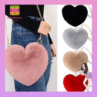 Túi Xách Đeo Chéo Giả Lông Mềm Phối Dây Xích Thời Trang