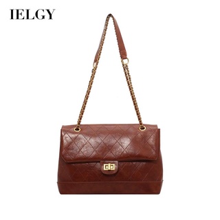 Túi đeo vai IELGY mềm màu trơn phối dây đeo mắt xích thời trang thanh lịch cho nữ