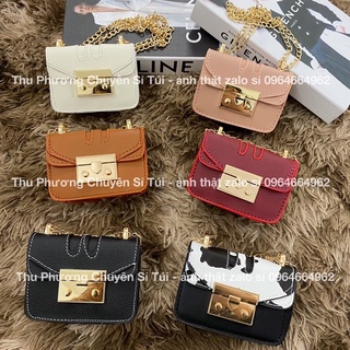 Túi quai xách - Túi đeo chéo cặp lồng mini trần trám dây phối xích thời trang size 14 (không vừa điện thoại)