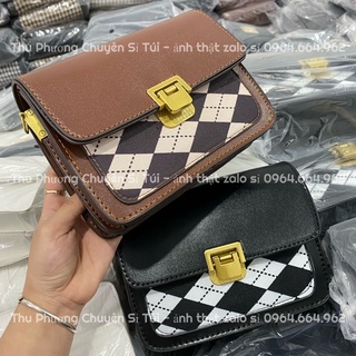 Túi đeo chéo,quai xách dáng hộp khoá xoay hoạ tiết hình thoi phong cách trẻ trung - hàng QCCC chuẩn (tặng kèm chùm bông)