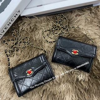 Túi ví CN.K ô trám da hạt hàng xuất dư kèm dây xích đeo chéo để vừa điện thoại (ảnh thật - kèm video shop quay)