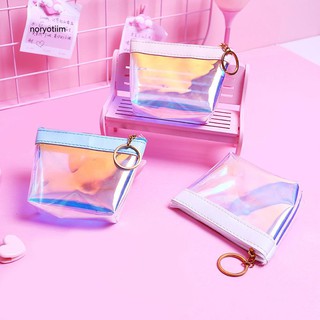 Ví nhỏ đựng tiền xu bằng da giả trong suốt lấp lánh có khóa kéo cho nữ