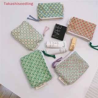 Túi Đựng Mỹ Phẩm / Tiền Xu Mini Bằng Vải Cotton Có Khóa Kéo Họa Tiết Hoa Phong Cách Hàn Quốc Cho Nữ Ốp