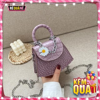 Túi Xách Mini Chất Da Họa Tiết Nổi Phối Xích Hoa Cúc